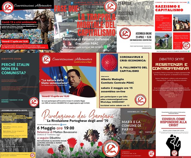 Se la pandemia ci ha costretti a rinunciare alle tradizionali forme di assemblea e riunione, sicuramente non ha fermato la nostra determinazione a contrapporre la nostra voce rivoluzionaria alla propaganda capitalista. In questi mesi, abbiamo organizzato decine di assemblee online locali, regionali e nazionali, affrontando sia temi di attualità (in particolare le responsabilità del capitalismo nella pandemia in corso), sia temi di approfondimento della teoria marxista e della storia del movimento operaio.