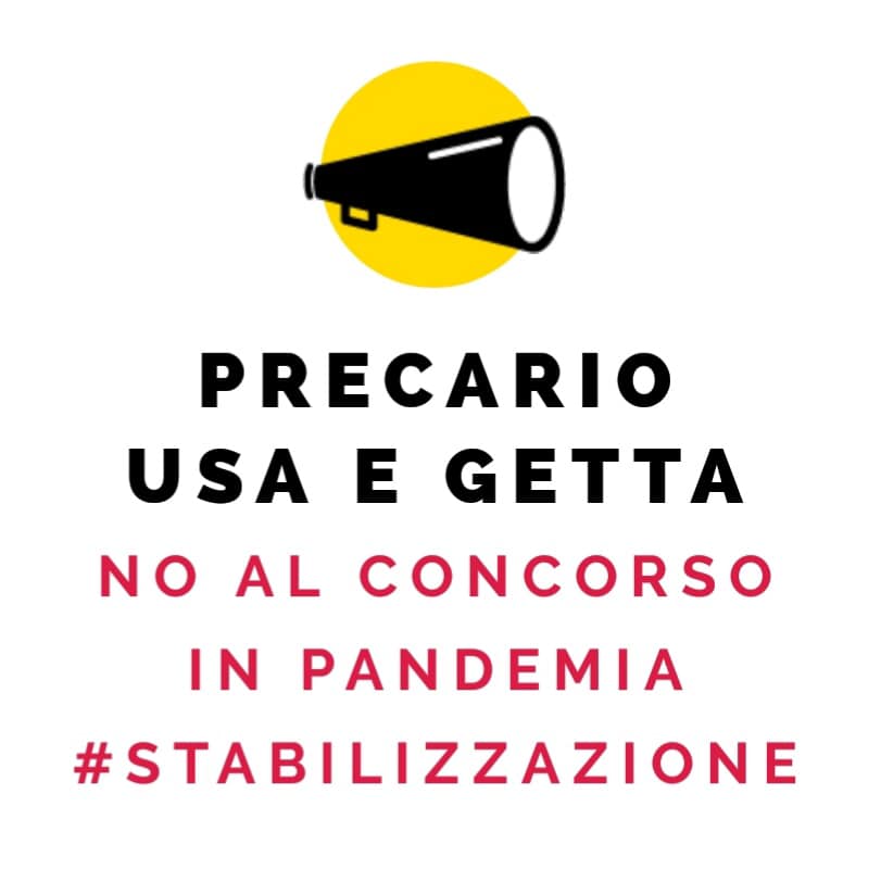 La difficile situazione pandemica che attraversa il Paese dall'anno scorso in aggiunta al pensionamento di diverse migliaia di insegnanti poteva essere l'occasione per riappacificarsi con il provato comparto dei precari della scuola attraverso assunzioni mirate: ciò è stato abilmente evitato, nonostante continue proposte e tavoli estenuanti con le numerose associazioni di precari, attraverso rimandi ingiustificati sebbene solo quest'anno siano oltre duecentomila i docenti precari in servizio. Come ultima beffa hanno approntato un concorso in piena pandemia, sebbene il DCPM pronunciato prevedesse che i concorsi fossero perpetrati "solo in caso di urgenza", mandando migliaia di precari a rischiare letteralmente la propria salute in giro per l'Italia. Piuttosto che assumere i lavoratori, piuttosto che smettere di denigrare la categoria dei lavoratori definiti "senza professionalità" si preferisce mortificarli e imbavagliarli. Il precariato è un crimine di Stato e solo la lotta pagherà. I precari non si fermeranno fino a che non saranno assunti.